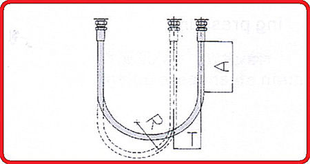 3、高壓軟管的安裝連接,無論在自然狀態(tài)下,還是在運動狀態(tài)中,其彎曲半徑均不小于高壓軟管制造廠規(guī)定的最小彎曲半徑,具軟管的彎曲半徑,應(yīng)遠(yuǎn)離軟管接頭處,其最短距離A,應(yīng)大于軟管外徑的1.5倍。